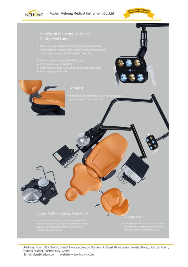 • Targeting the elderly population: Adults aged 65 and above account for 17% of the U.S. population, with a huge demand for dental implants—over 2 million implants are placed annually. Duoyimei has developed a specialized dental treatment chair for implant procedures, featuring a floor-standing cabinet design that ensures stability during implantation. The chair adopts the iconic “Canton Tower” (a landmark in Guangzhou) shape, symbolizing stability, diligence, and positivity, complemented by a European-American style appearance with sleek, minimalist lines. It serves as an eye-catching addition to dental clinics or hospitals. Equipped with a Denmark-imported control motor, the chair operates smoothly and quietly. Its rail-type ergonomic frame, with prominent streamline and stable support mechanics, enhances patient comfort during implantation and reduces back soreness. All Duoyimei chairs hold CE certification and have passed inspections by institutions designated by China’s Food and Drug Administration and TÜV Rheinland, ensuring each unit is qualified and reliable.