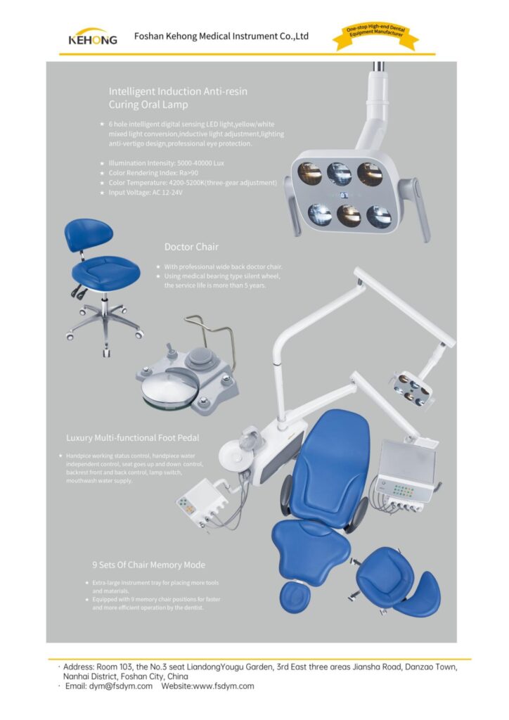 I. DYM dental chairs feature fashionable designs, excellent ergonomic structures, and durable construction. Since their launch, they have been favored by many dental clinics and oral hospitals and received unanimous praise from dentists under 45 years old (Duoyimei dental chairs come with a 2-year warranty and an effective service life of 15 years).