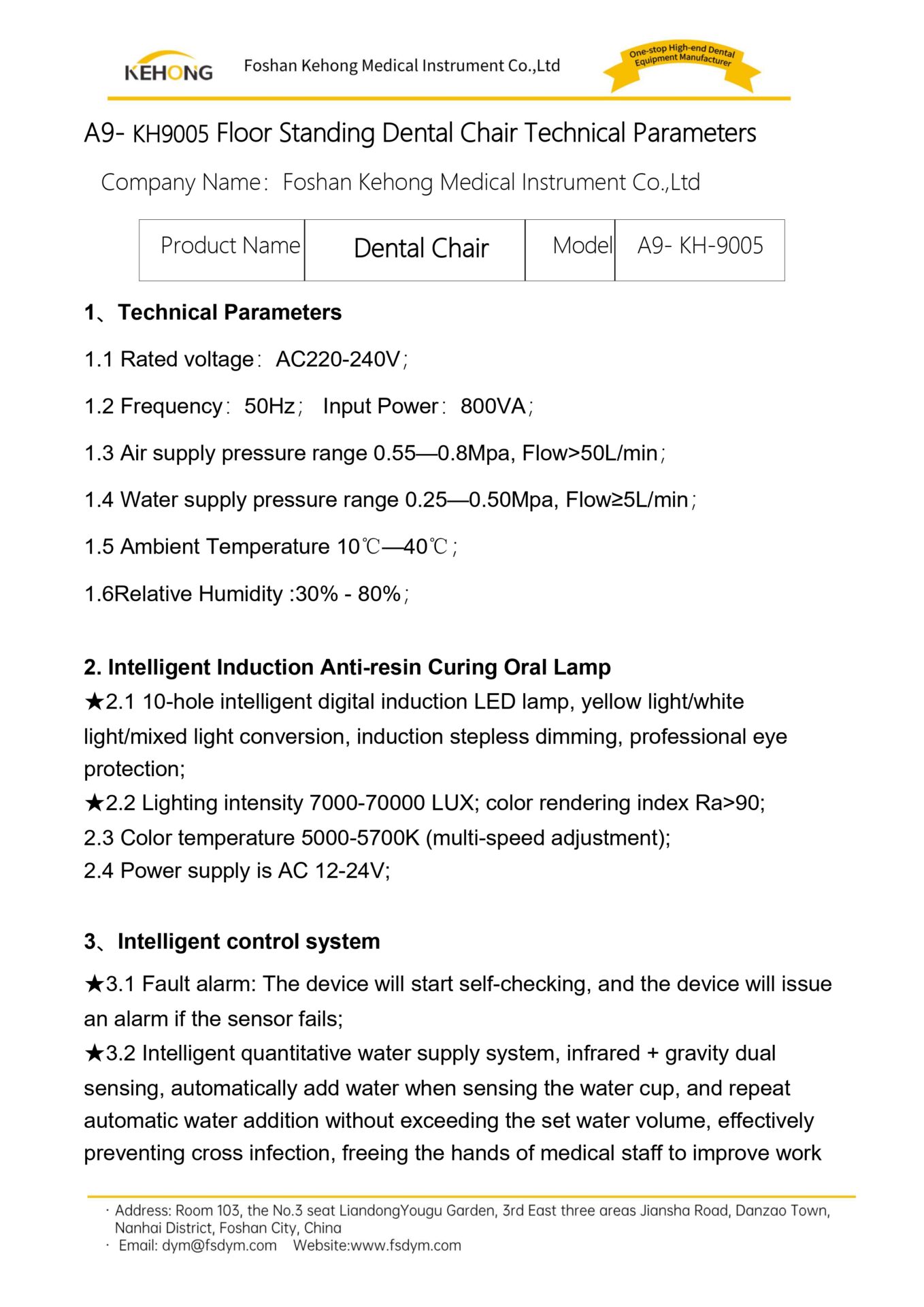 A9 Implant movement Dental Chairs -parameter