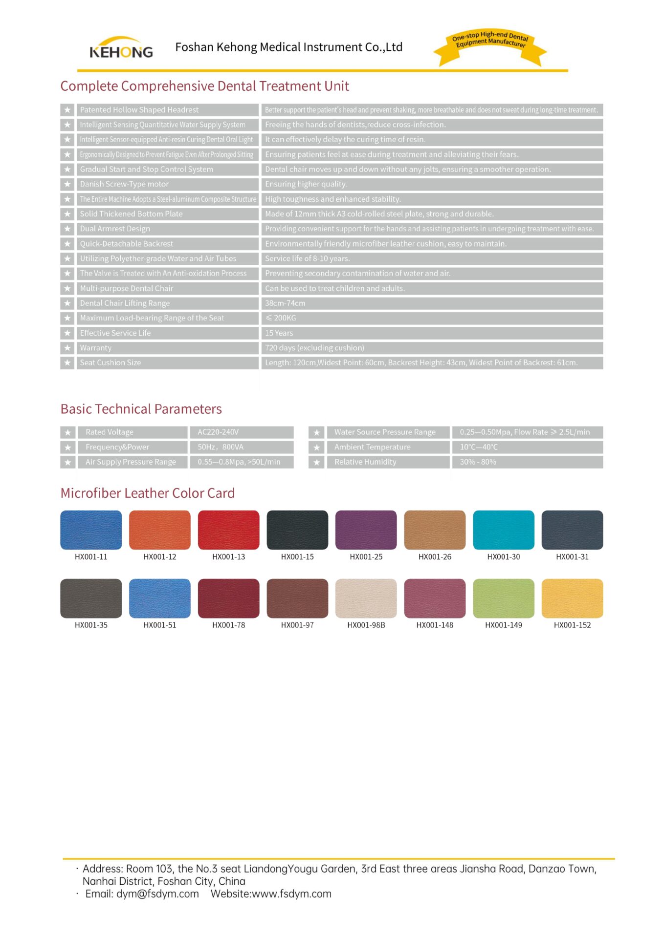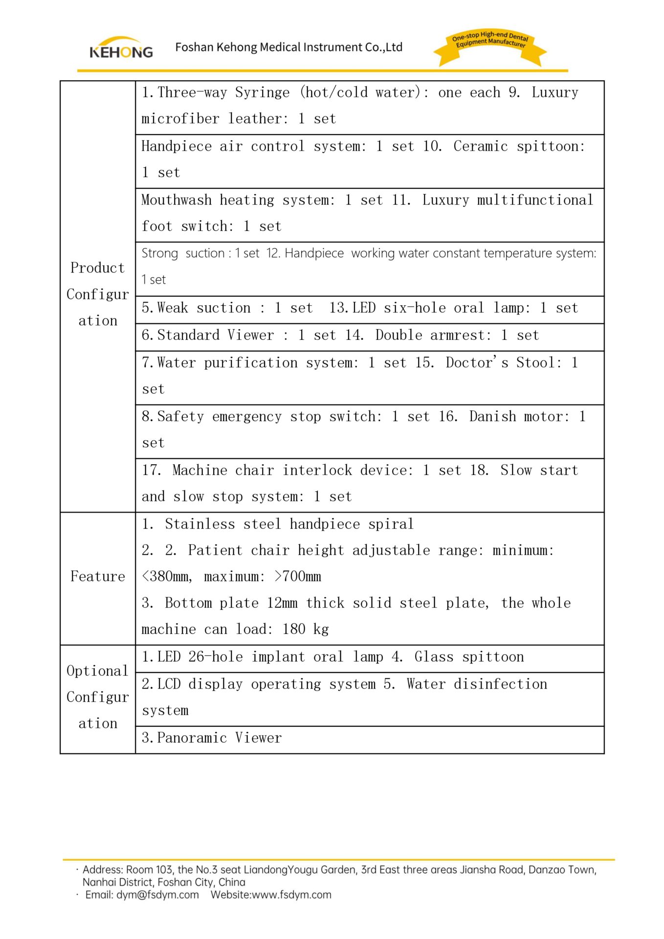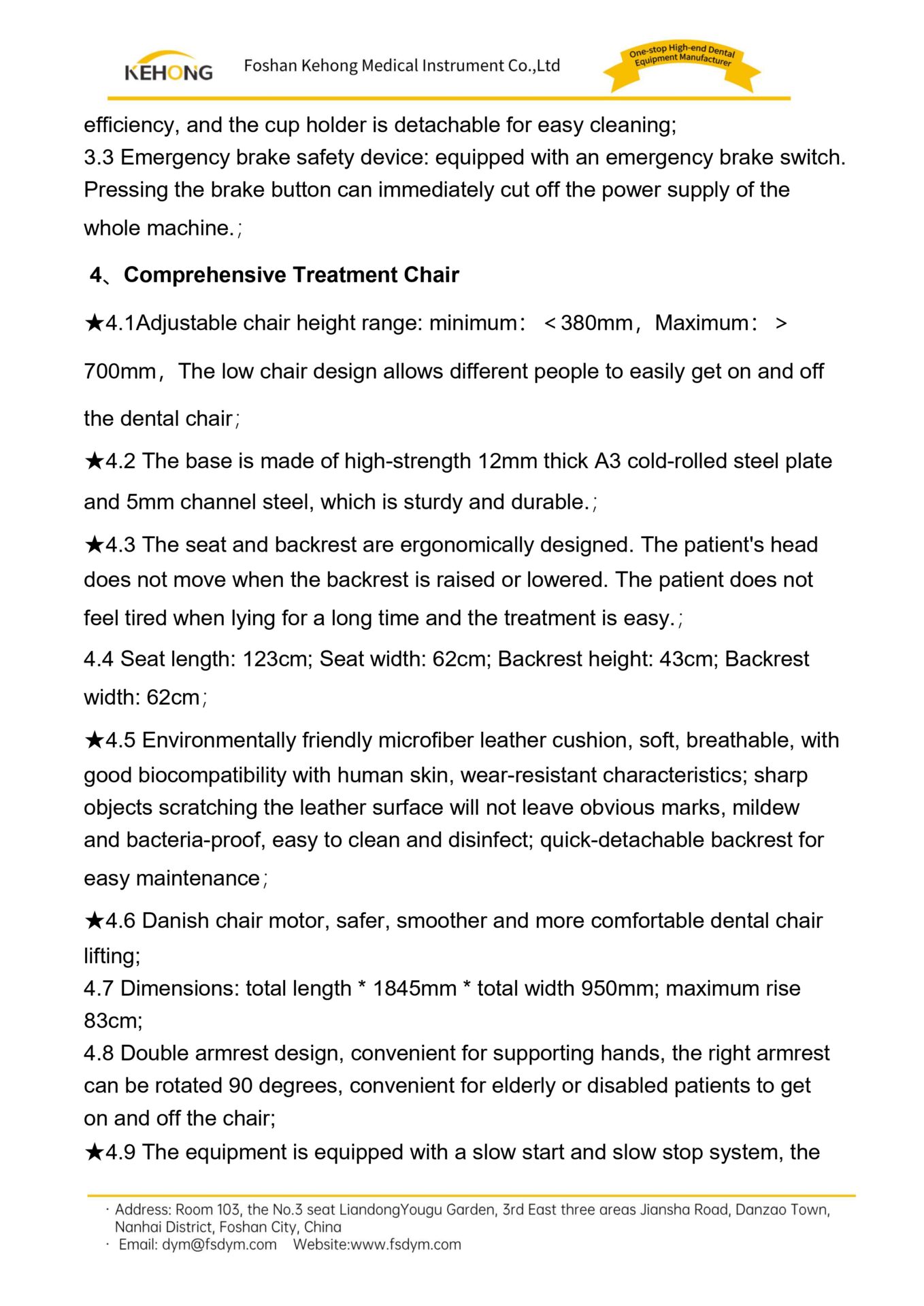 4.11 Lifting range of treatment chair: 38cm-74cm