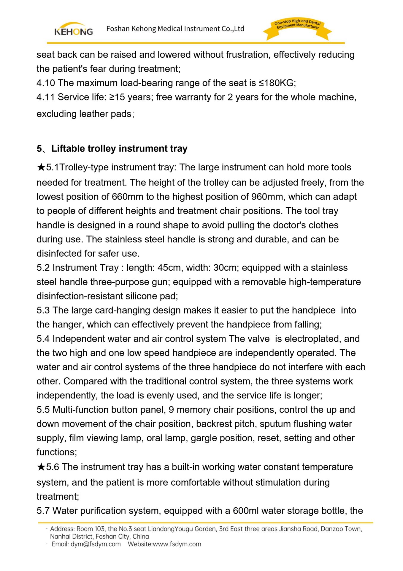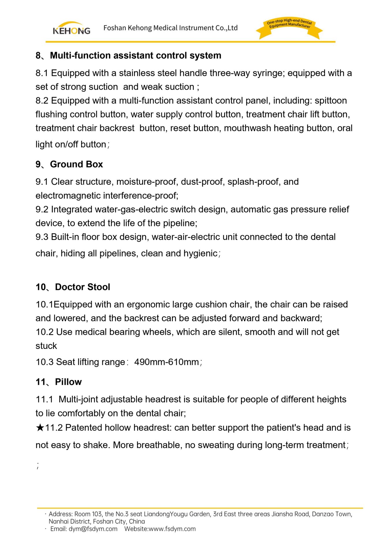 10.3 The doctor’s chair lifting range: 490mm-610mm