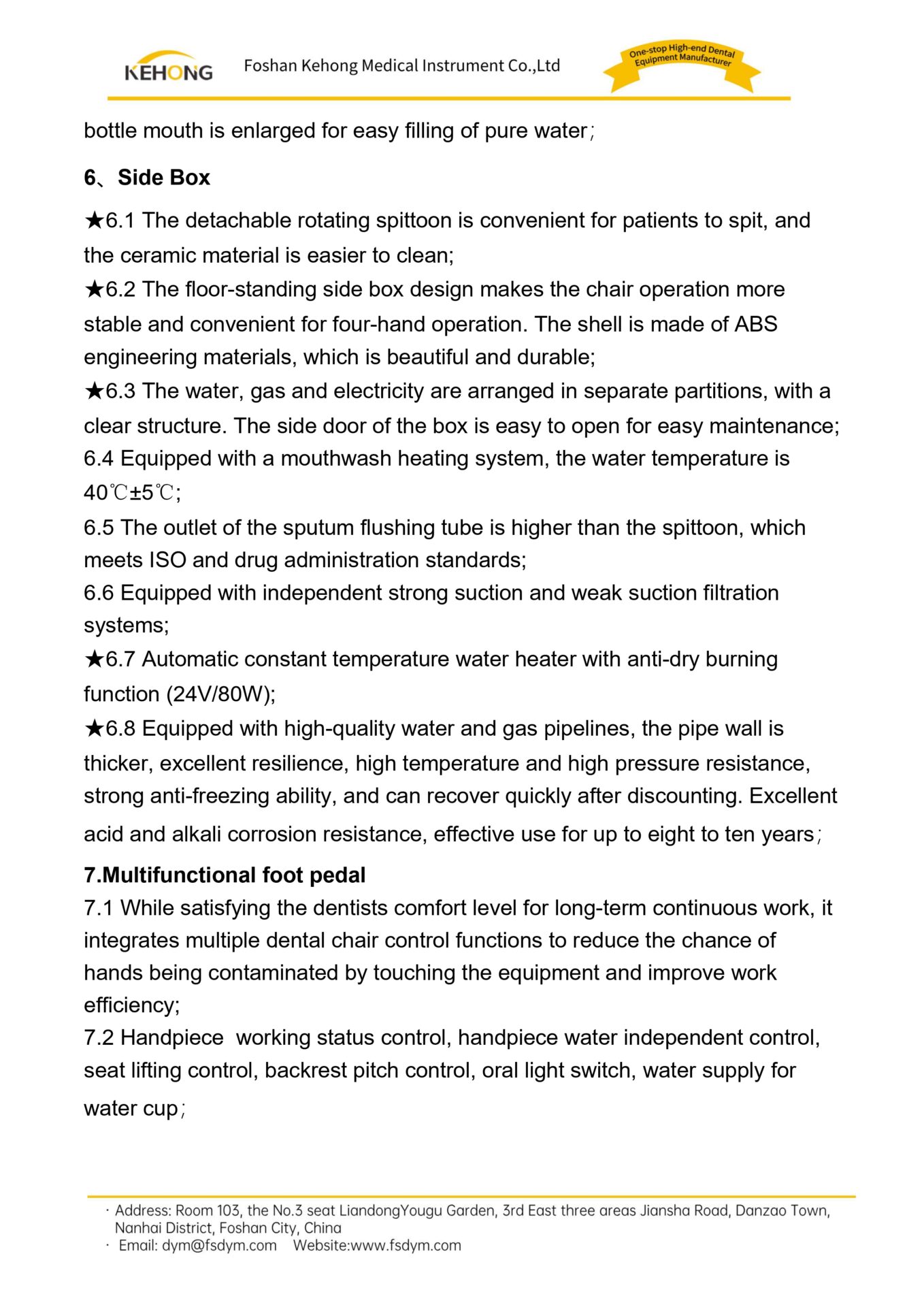 7.1 While satisfying the doctor’s long-term continuous work comfort, it incorporates multiple dental chair control functions to