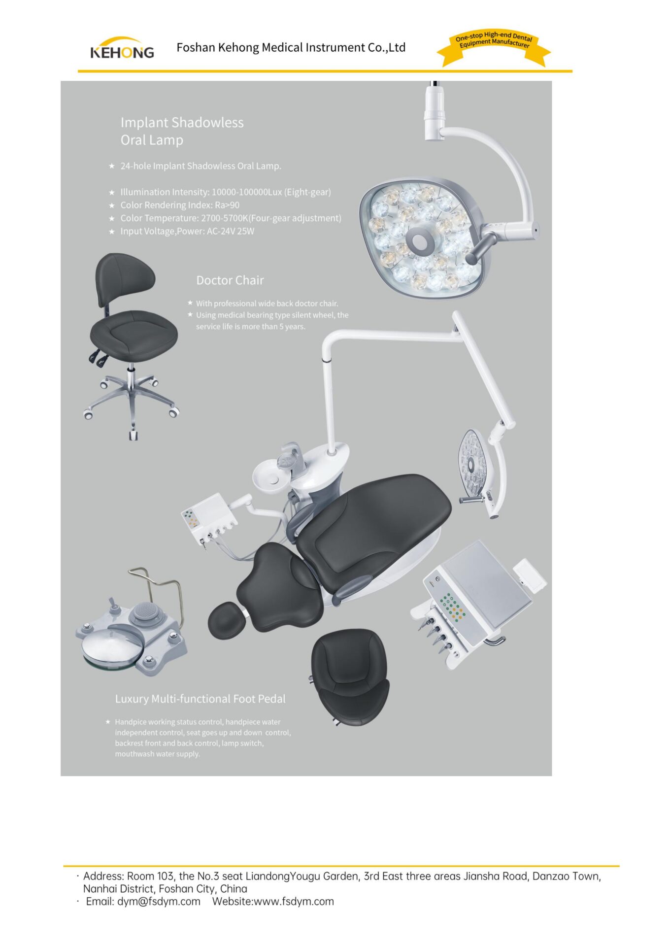 3. Multi-function foot pedal, control the water, air and oral lamp ON/OFF