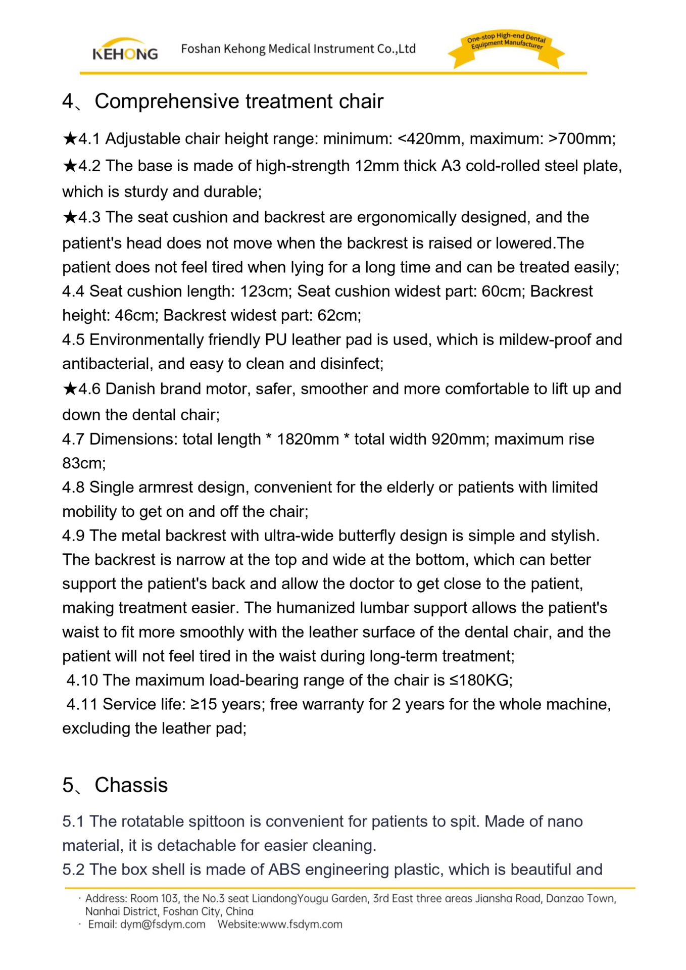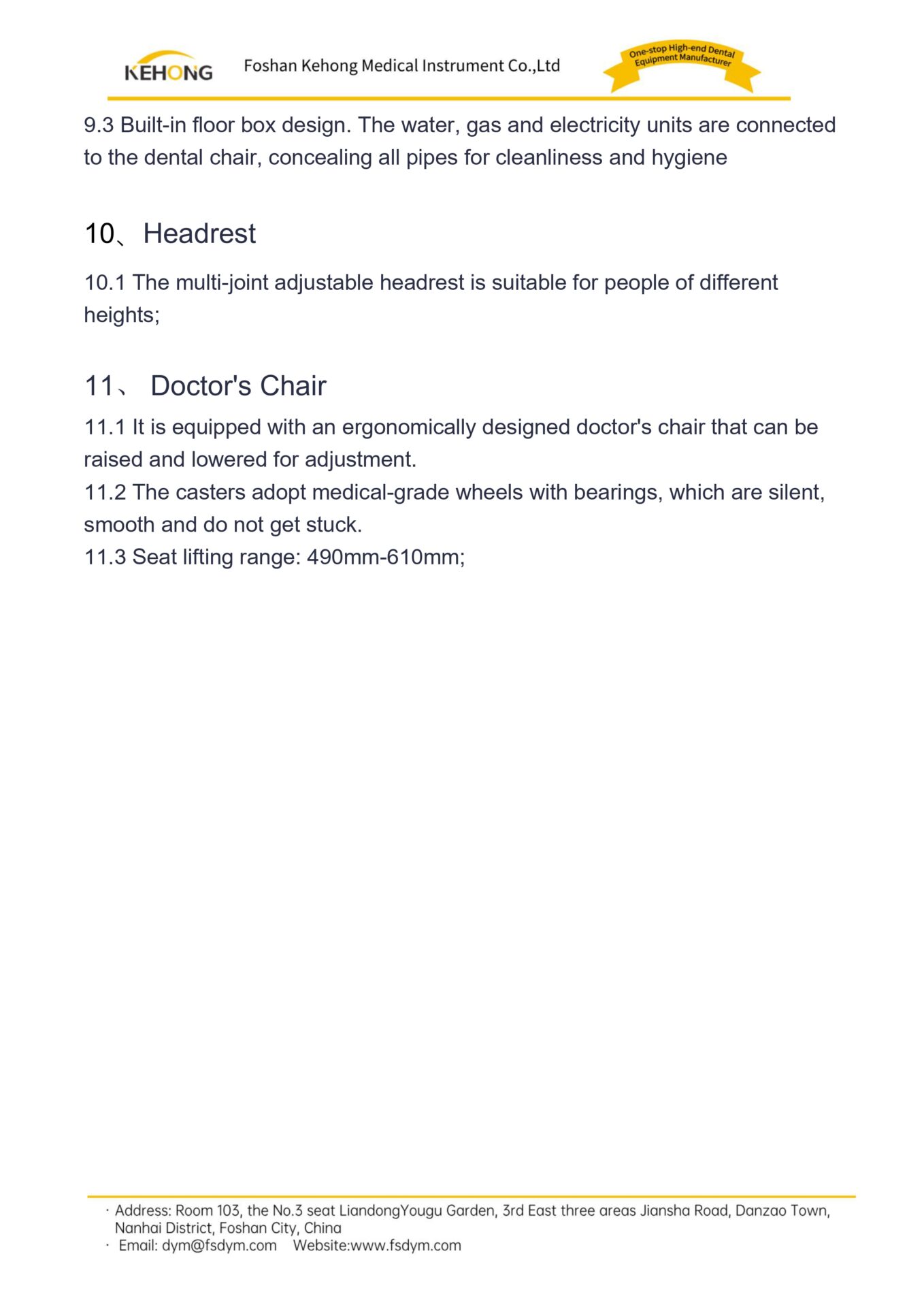 10.1 Equipped with an ergonomically shaped doctor’s chair, which can be adjusted for chair up and down