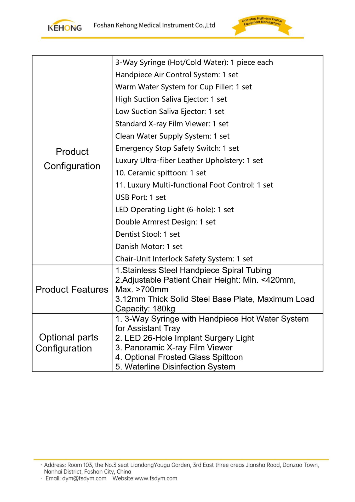 Popular white&yellow LED light automatically sensor water supply dental chair